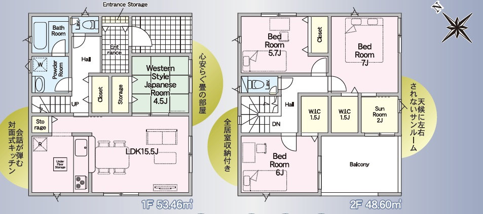 (1階)和4.5、(1階)LDK15.5、(2階)洋7、(2階)洋6、(2階)洋5.7 |