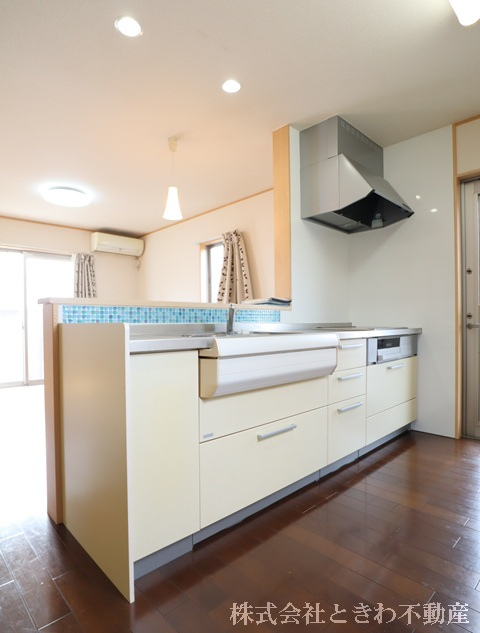 公営水道、公共下水道、オール電化、システムキッチン、カウンターキッチン、IHクッキングヒーター、1坪浴室、洗髪洗面化粧台、温水洗浄便座、トイレ2カ所、TVインターホン、復層ガラス、省エネ給湯、駐車場3~4台可、照明器具、ロフト |