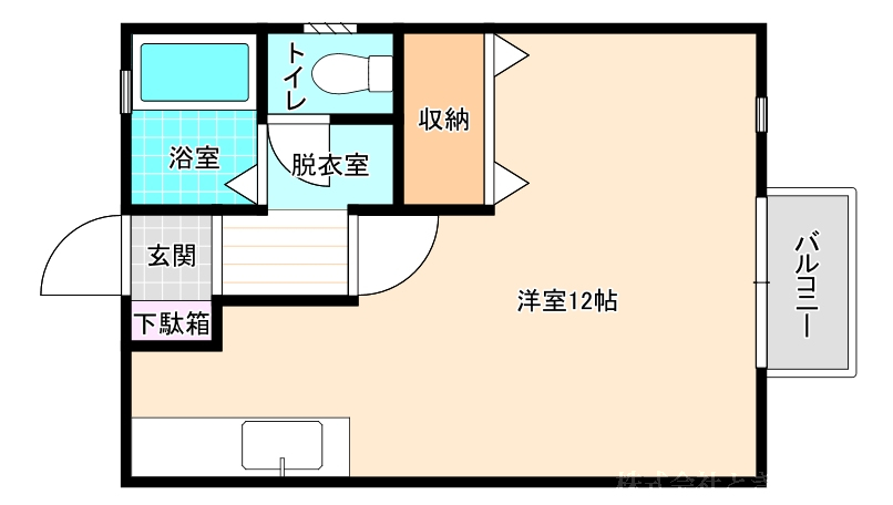 ★12帖の広めの1Kです。ベッドや机など余裕で置けますよ。