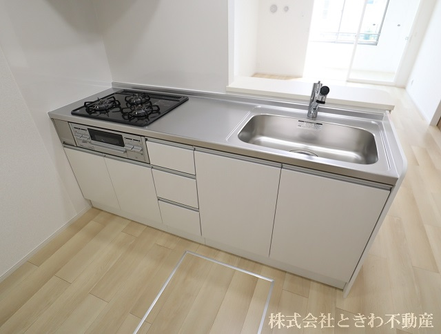 ★人気の対面キッチンに3口コンロのシステムキッチン付き!さらに広々とした一坪タイプの浴室です♪